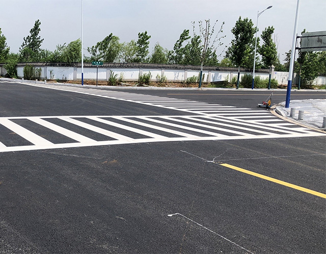 标线施工:将熔化后的涂料放入施工设备中,进行标线施工。